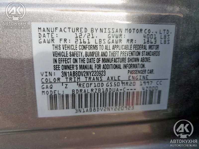 - VIN3N1AB8DV2NY******