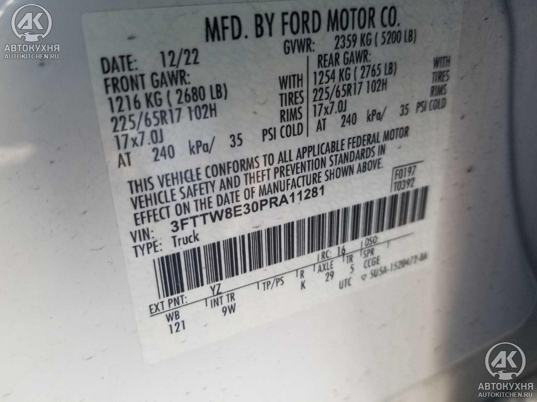 - VIN3FTTW8E30PRA11281