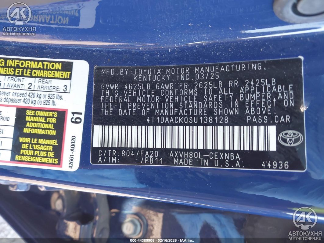 - VIN4T1DAACK0SU138128