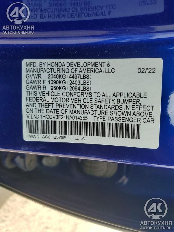 - VIN1HGCV3F21NA******