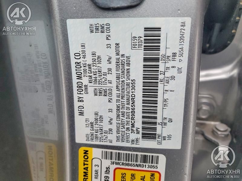 - VIN3FMCR9B65NR******