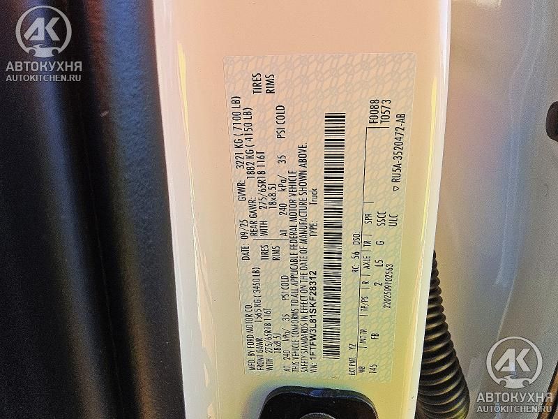 - VIN1FTFW3L81SK******