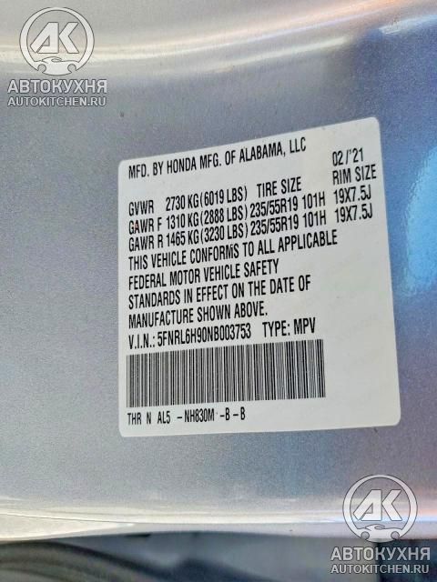 - VIN5FNRL6H90NB******