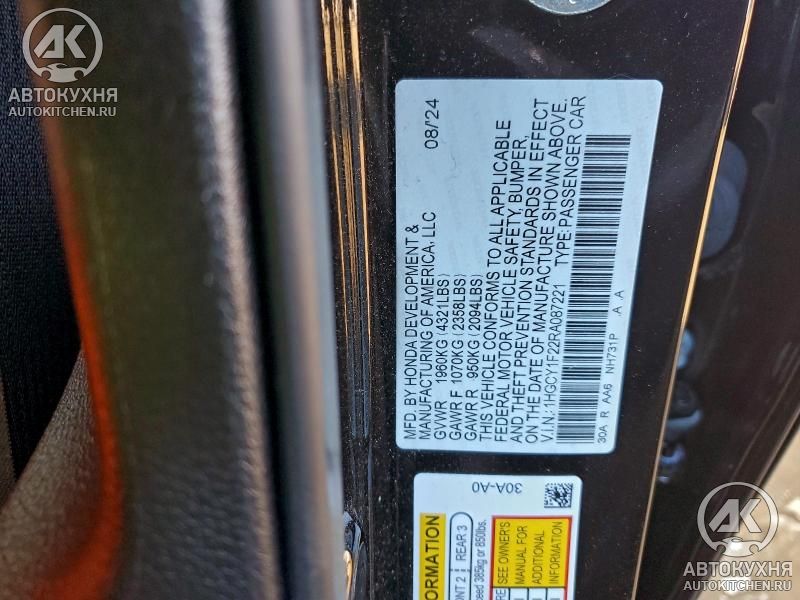 - VIN1HGCY1F22RA******