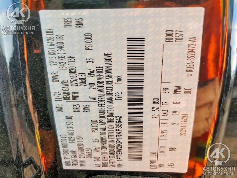- VIN1FTEW2KP1RK******