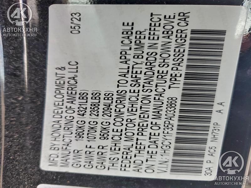 - VIN1HGCY1F35PA******