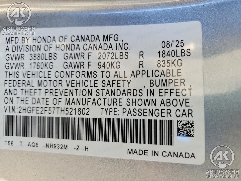 - VIN2HGFE2F57TH******