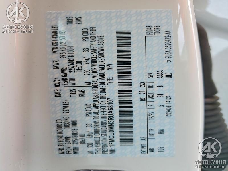 - VIN1FMCU0MN3RU******
