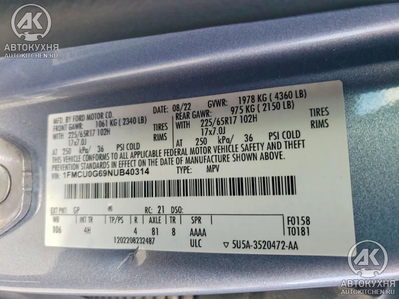 - VIN1FMCU0G69NU******