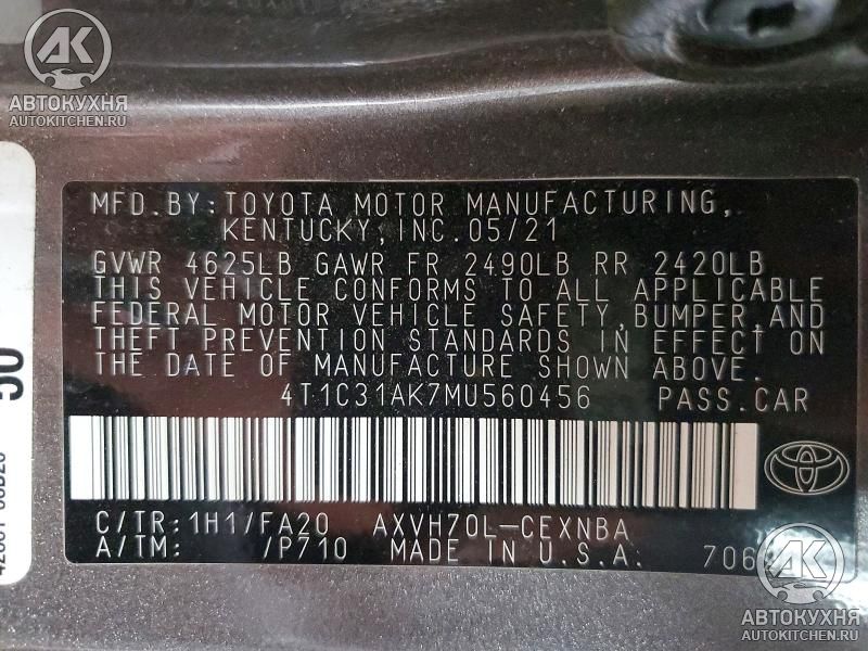 - VIN4T1C31AK7MU******
