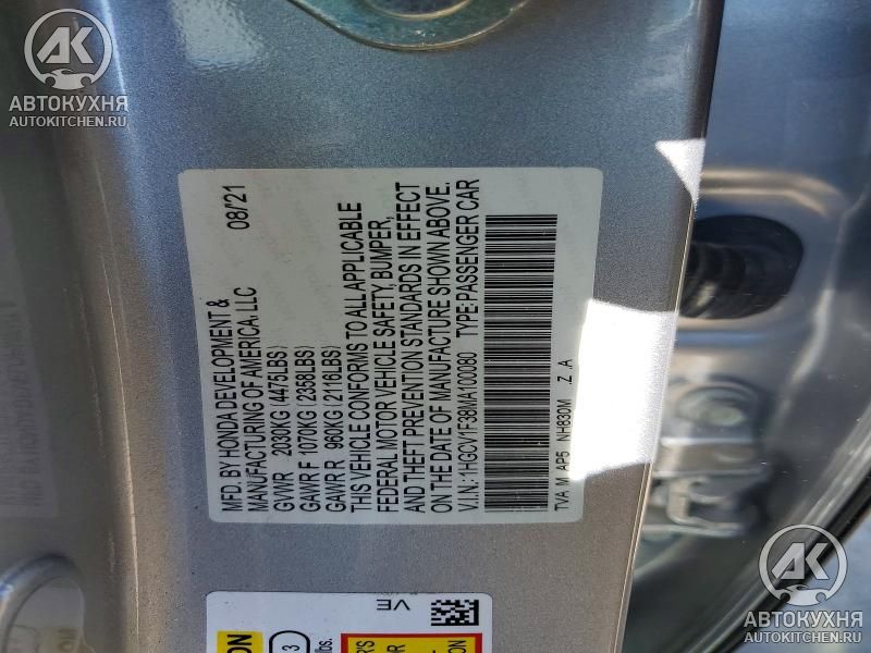 - VIN1HGCV1F38MA******