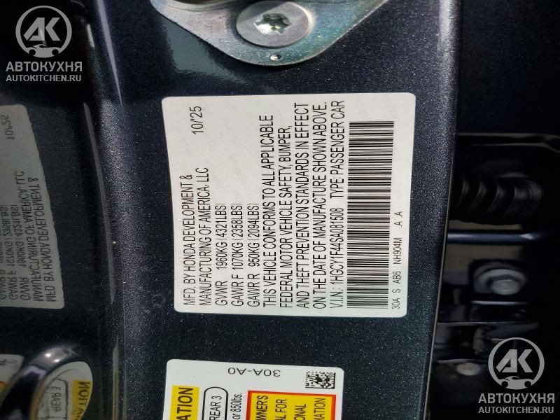 - VIN1HGCY1F44SA******
