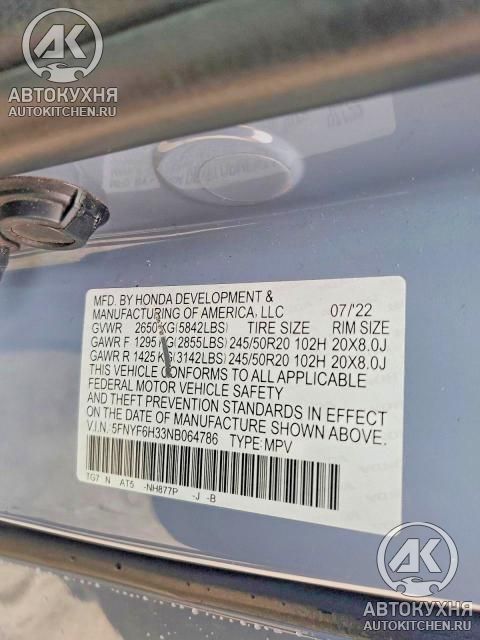 - VIN5FNYF6H33NB******