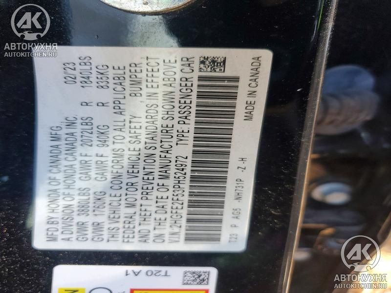 - VIN2HGFE2F53PH******