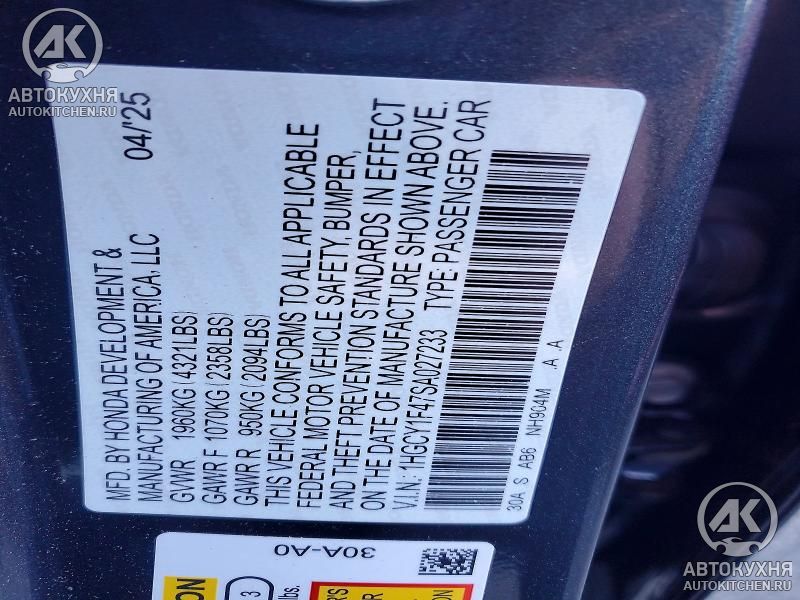 - VIN1HGCY1F47SA******