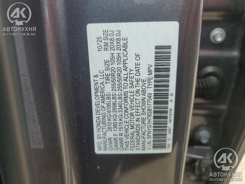 - VIN5FNYG1H78SB******