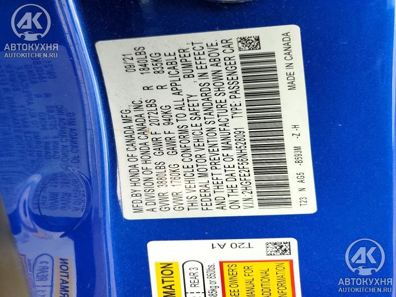 - VIN2HGFE2F56NH******