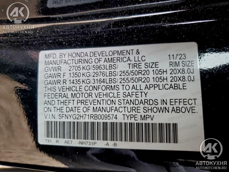 - VIN5FNYG2H71RB******