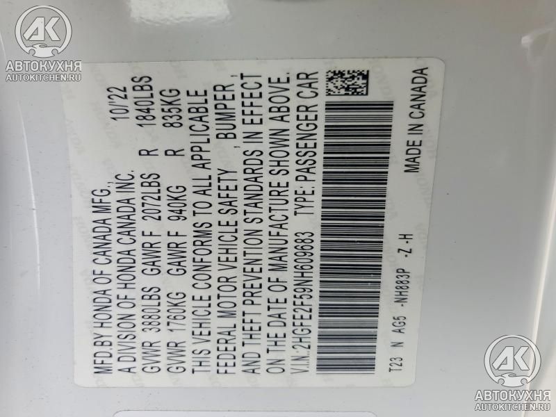 - VIN2HGFE2F59NH******