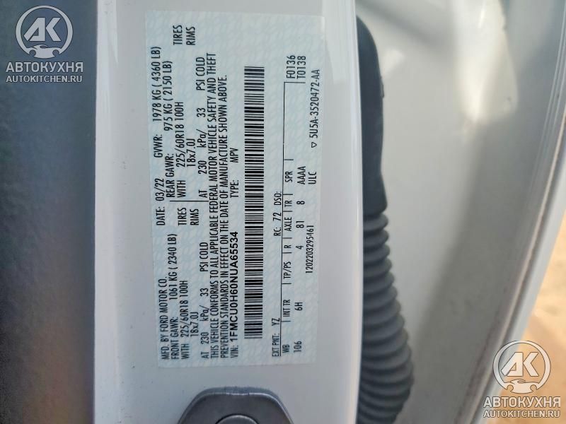 - VIN1FMCU0H60NU******