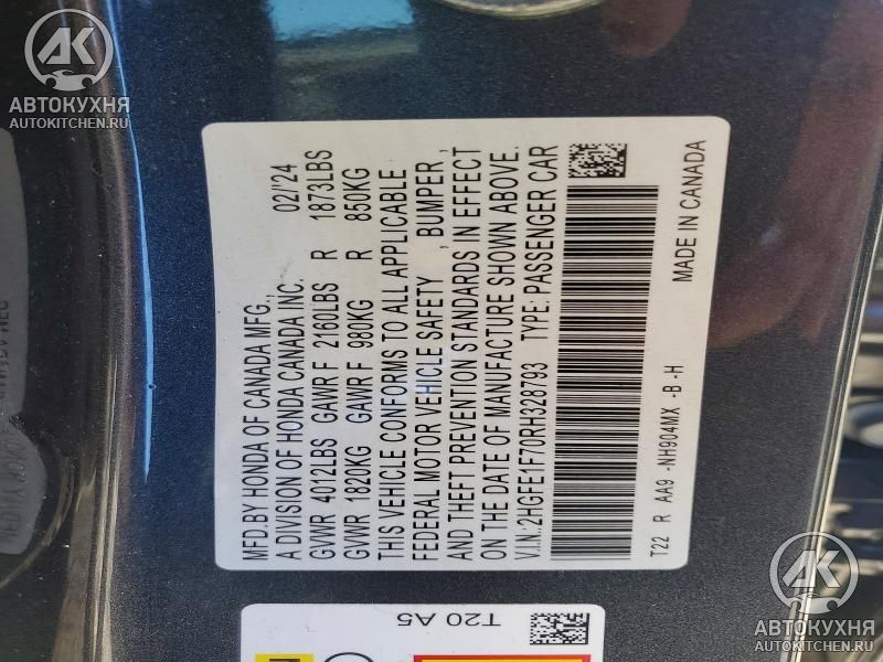 - VIN2HGFE1F70RH******