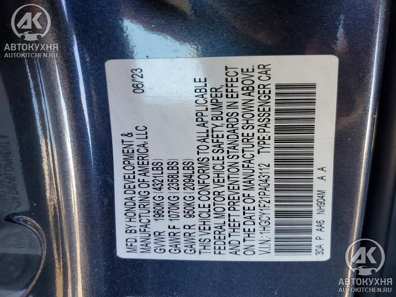 - VIN1HGCY1F21PA******
