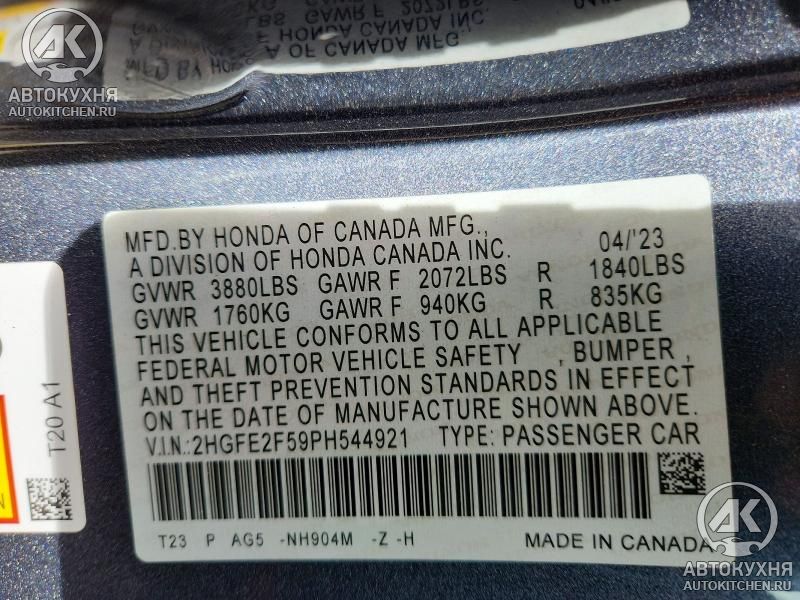 - VIN2HGFE2F59PH******