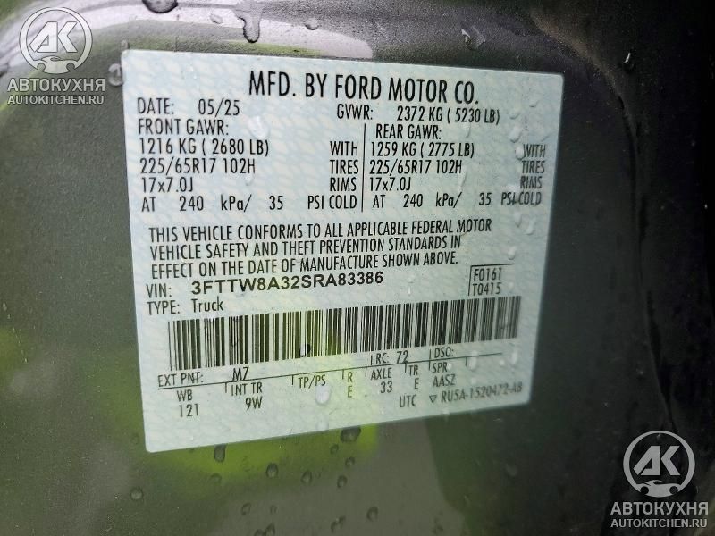 - VIN3FTTW8A32SR******
