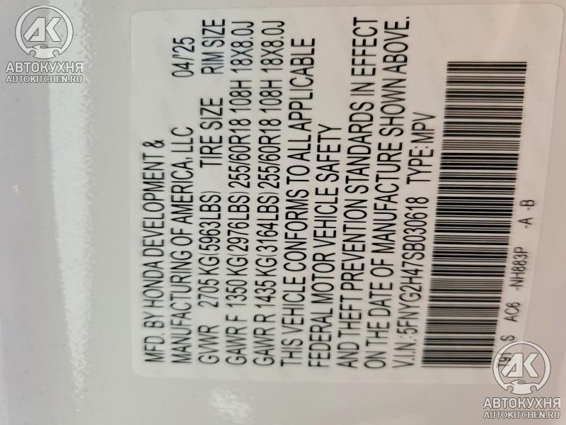 - VIN5FNYG2H47SB******