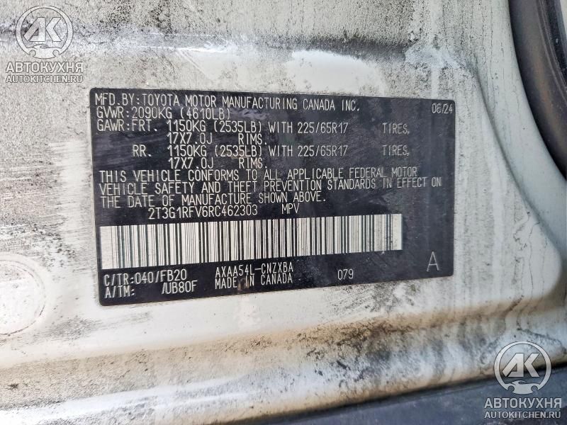 - VIN2T3G1RFV6RC******