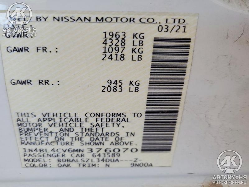 - VIN1N4BL4CV6MN******