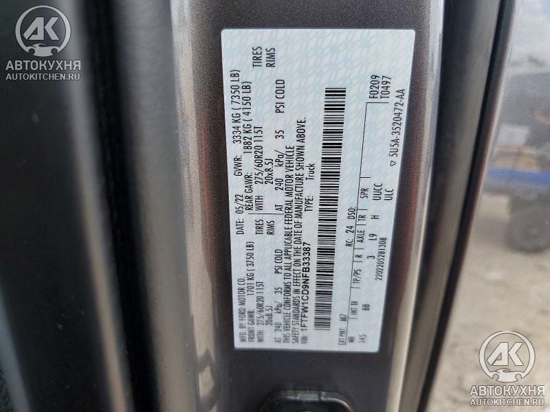- VIN1FTFW1CD9NF******