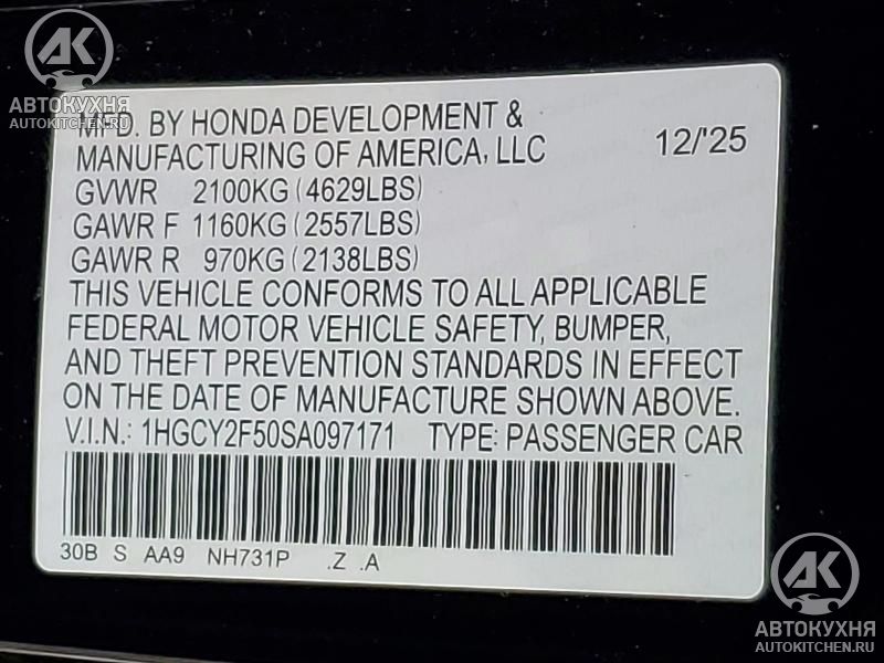 - VIN1HGCY2F50SA******