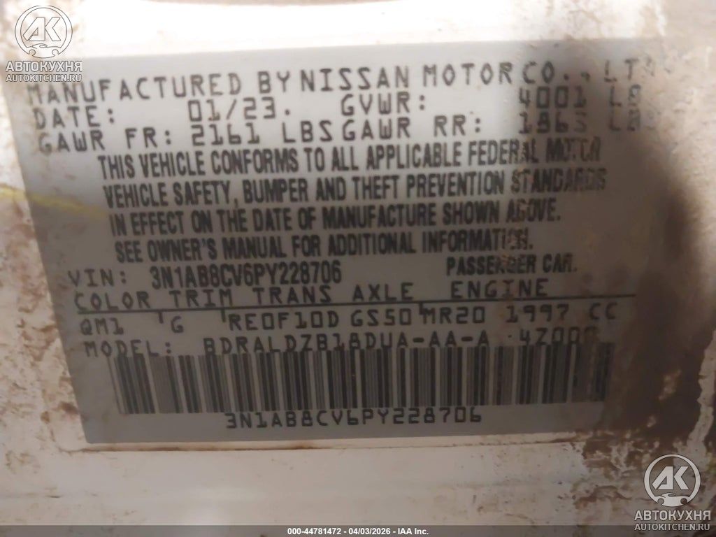 - VIN3N1AB8CV6PY228706