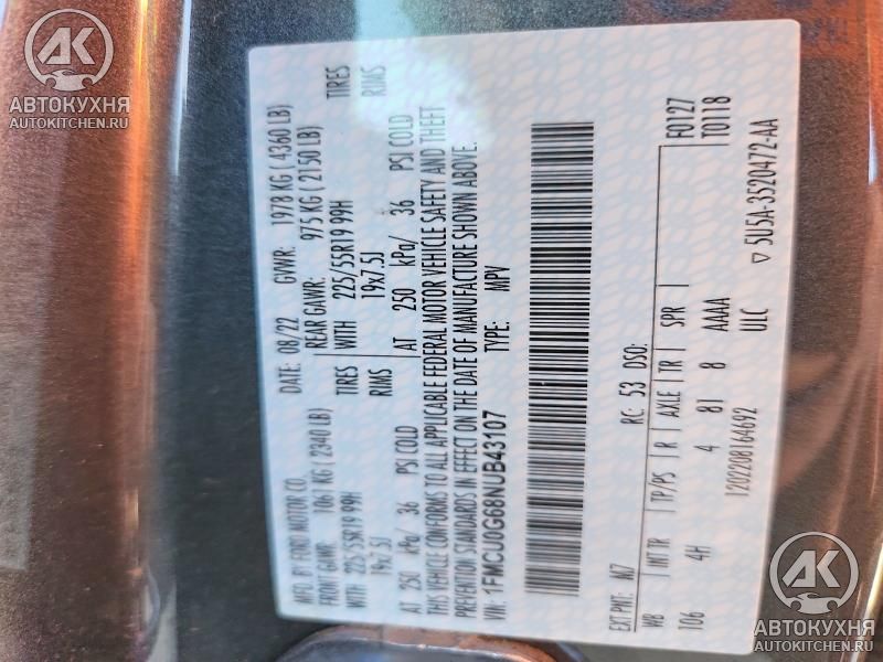 - VIN1FMCU0G68NU******