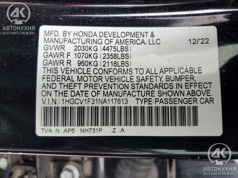 - VIN1HGCV1F31NA******