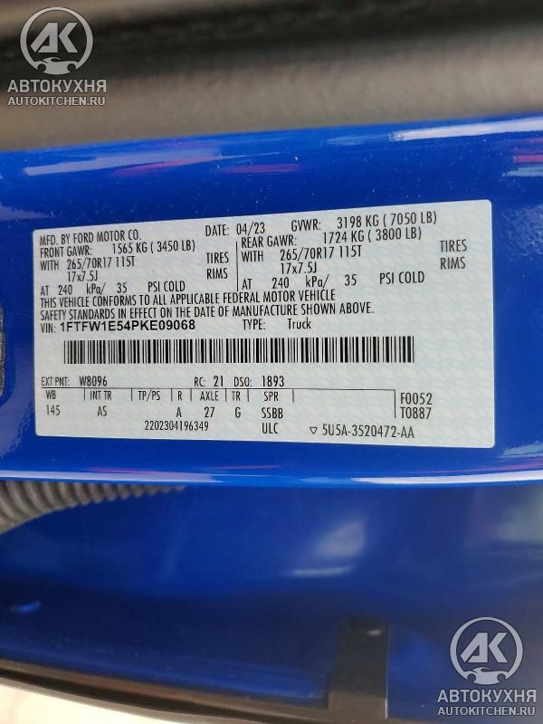 - VIN1FTFW1E54PK******