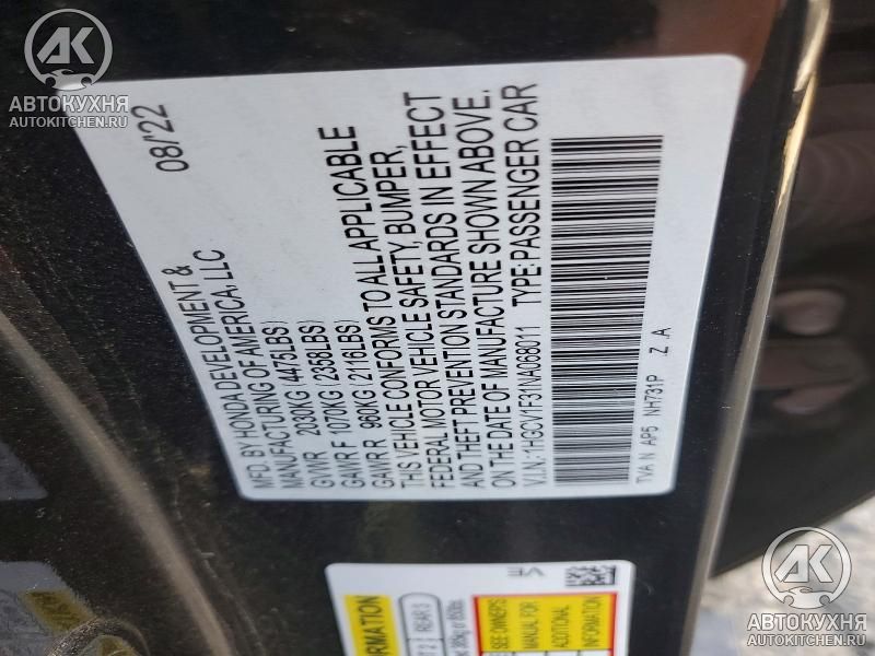 - VIN1HGCV1F31NA******