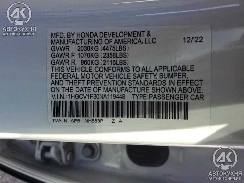 - VIN1HGCV1F30NA******