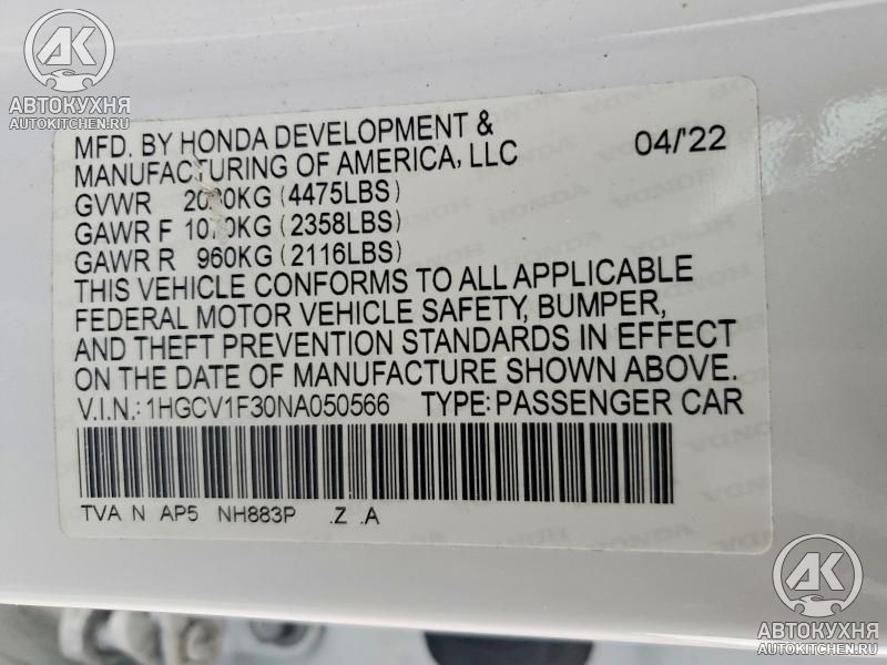 - VIN1HGCV1F30NA******
