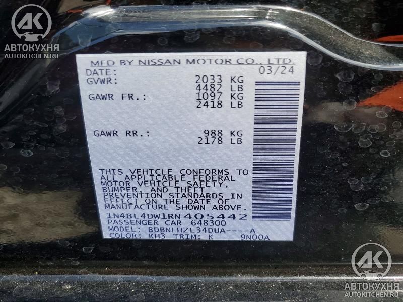 - VIN1N4BL4DW1RN******