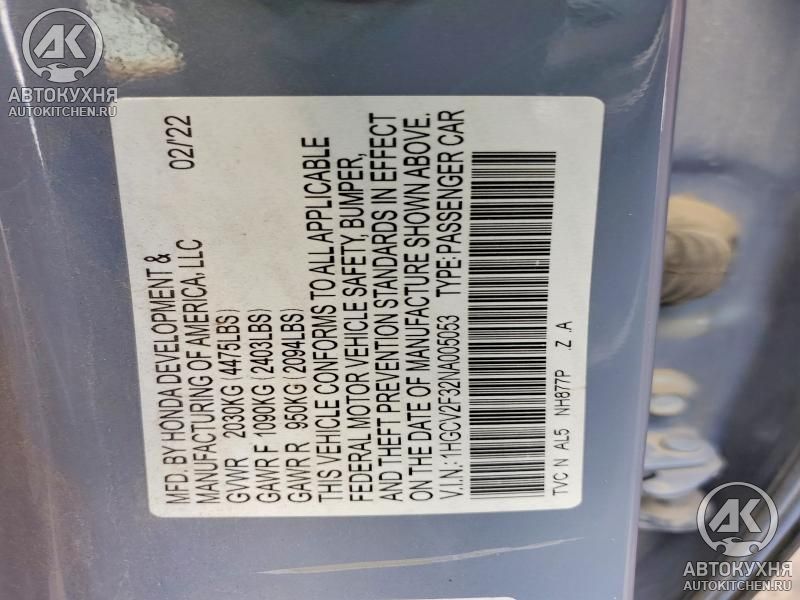 - VIN1HGCV2F32NA******